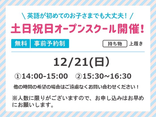 - ☆オープンスクール 12月21日(日)開催予定☆@KidsDuo向ヶ丘遊園