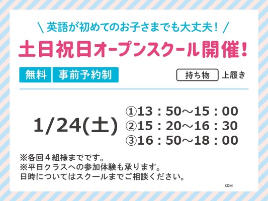 | 小1~小6 | 13:30 - 19:30 人気の曜日は、キャンセル待ちとなっております。 |