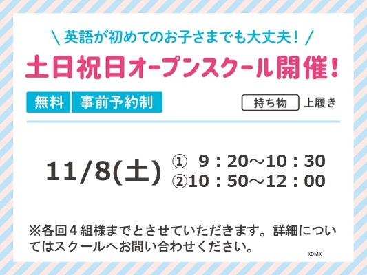 スクールへお気軽におこしください。みなさまとお会いできることを楽しみにしております。
