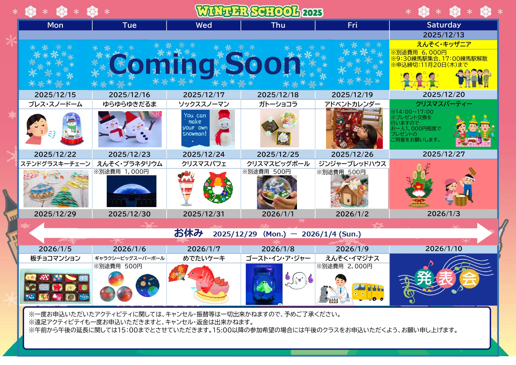 | 小1~小6 | 13:30 - 19:30 | ◯ | ◯ | ◯ | ◯ | ◯ | - | - |
