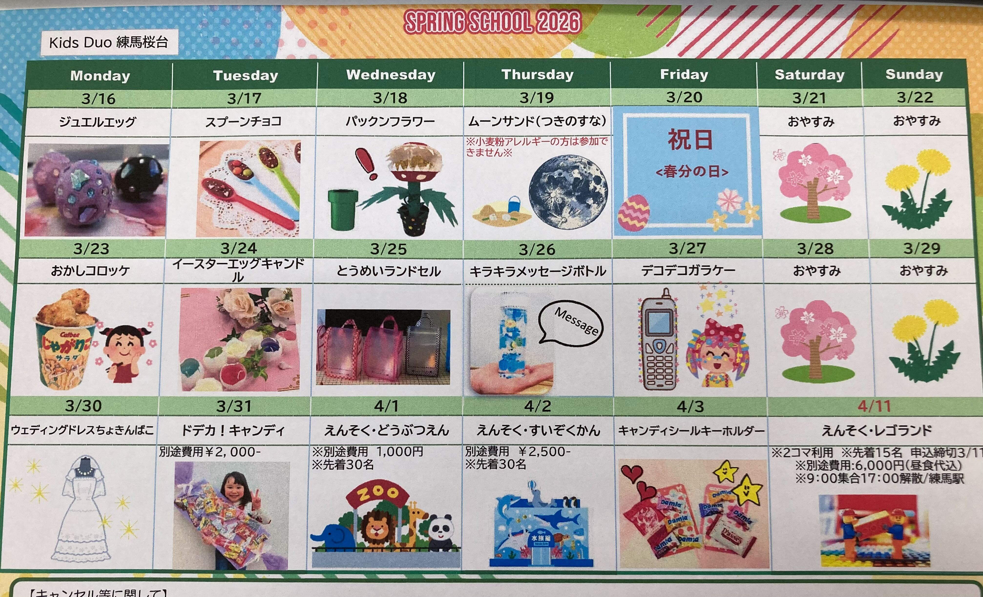 英語学童保育 Kids Duo 練馬桜台からのお知らせ
