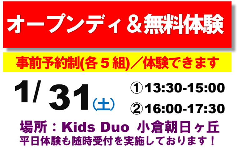 英語学童保育 Kids Duo 小倉朝日ヶ丘からのお知らせ