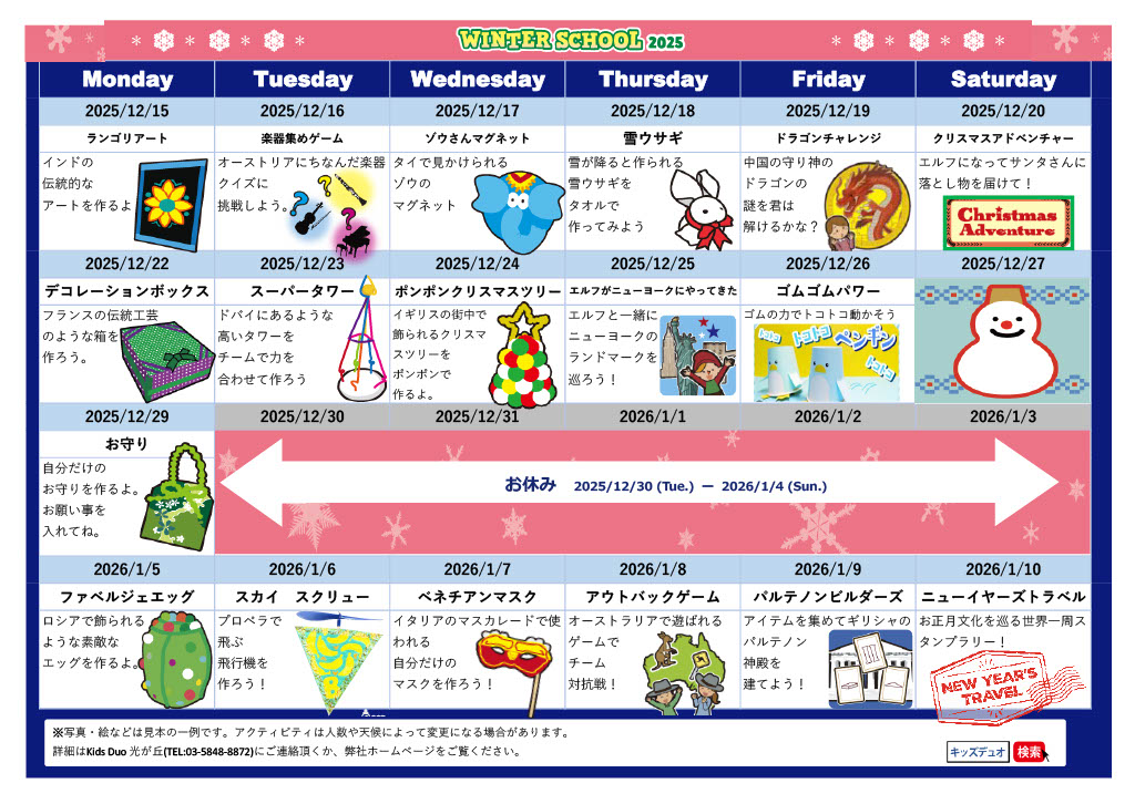 お待たせいたしました!Kids Duo 光が丘は今年もウィンタースクールを開催いたします。