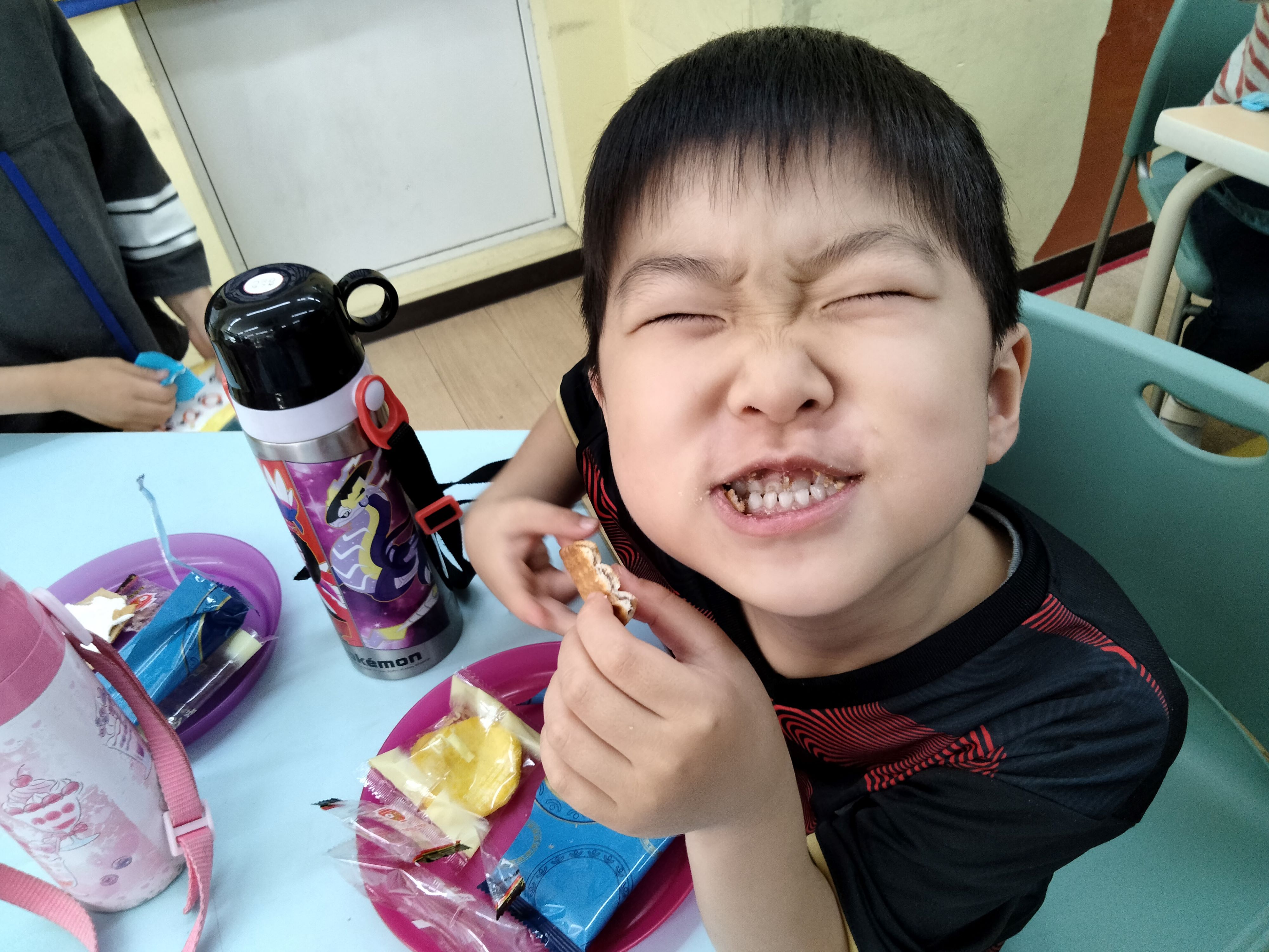 大好きなおやつの時間。Yummy! みんなで食べるとおいしいね。