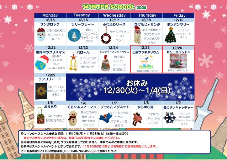 今年の冬はぜひ、キッズデュオ武蔵浦和でプチ留学を経験しませんか?