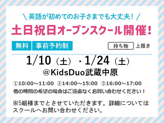 英語学童保育 Kids Duo 武蔵中原からのお知らせ