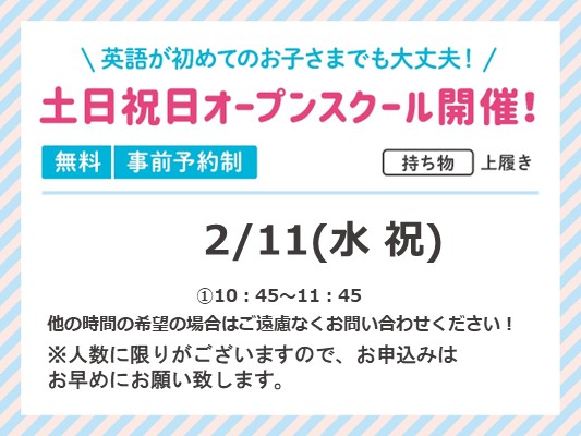 | 小1~小6 | 13:30 - 19:30 | ◯ | ◯ | ◯ | ◯ | ◯ | - | - |
