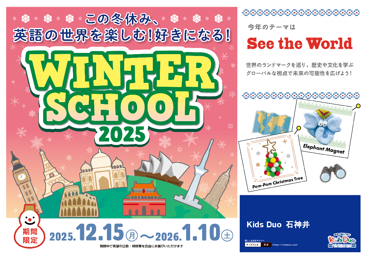 2025年12月15日〜2026年1月10日(※詳細は各教室カレンダーをご確認ください)