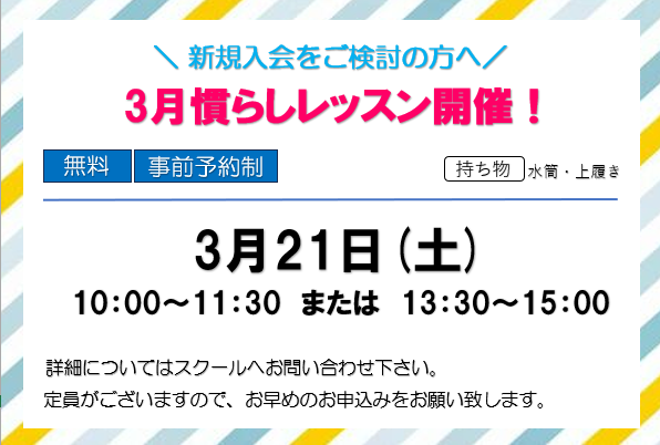 体験レッスンは随時受け付けておりますので、お気軽に遊びに来て下さい!