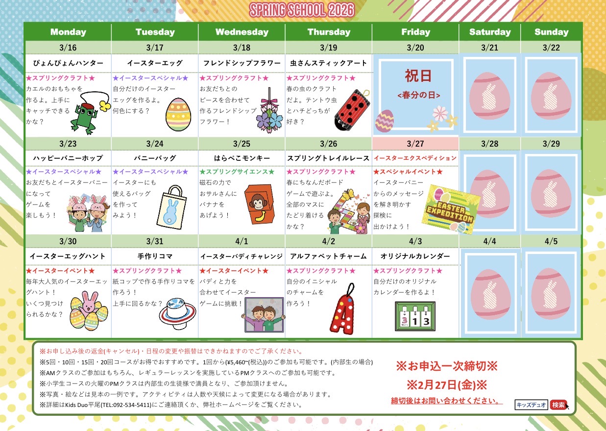 🐣🌼🐣スプリングスクール2026受付中🌼🐣🌼🐣