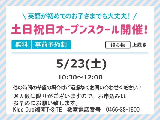 英語学童保育 Kids Duo 湘南T-SITEからのお知らせ