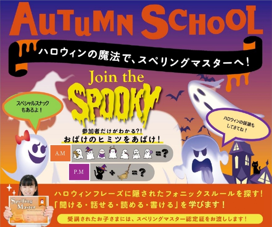 おばけと一緒にスペルの解読する謎解きをしながら、リーディング・ライティングの土台となる大切なフォニックスを学ぶことができます!今年は2つのプログラムを用意しております。