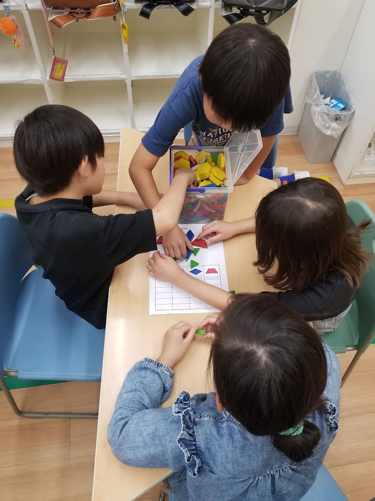 工作、読み聞かせ、パターンブロック、おえかき、音楽…今日は何をやろうかな?
