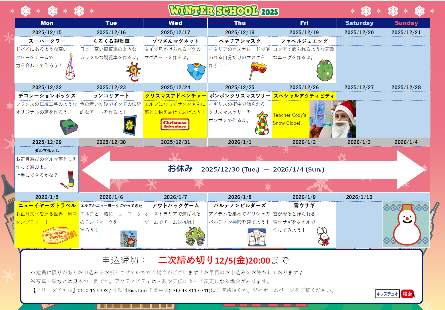 英語学童保育 Kids Duo 千葉中央からのお知らせ