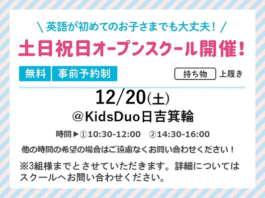 オープンスクールを開催します!! - 日程:12月20日(土)