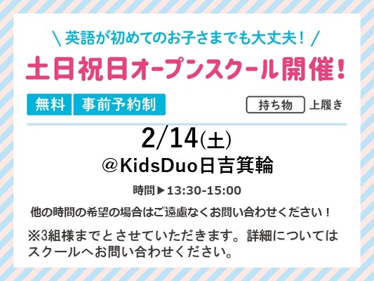 オープンスクールを開催します!! - 日程:2月14日(土)