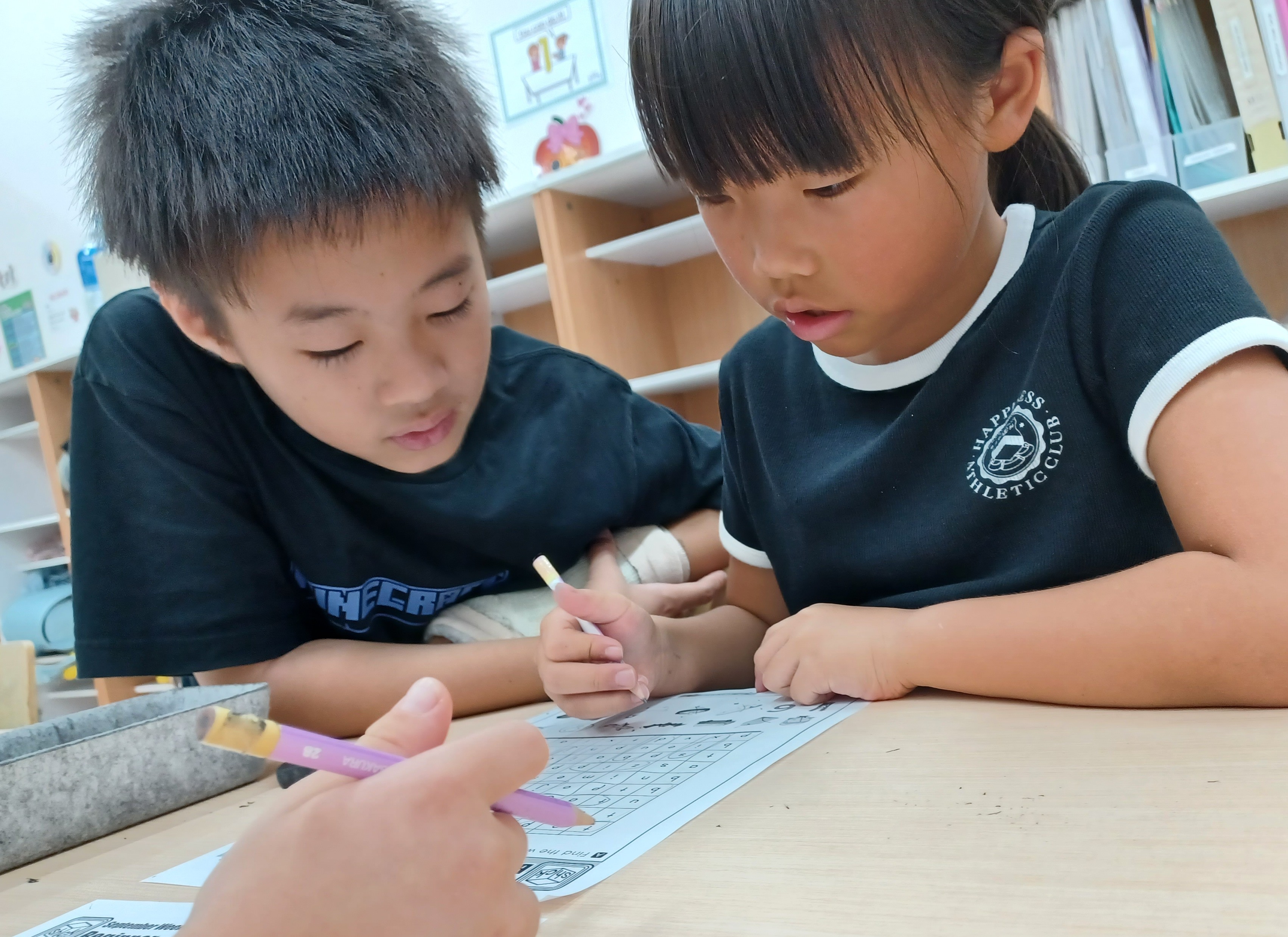 今の目標は、英検®準2級合格。クラス3の時間を使って、先生と一緒に練習しています。話すのと違って、伝えたいことや考えたことをスペルを間違わないように書くのは難しいけど、2人そろって準2級合格できるように頑張ります!