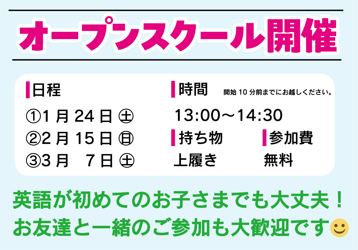 ※オープンスクールは事前のご予約が必要です。