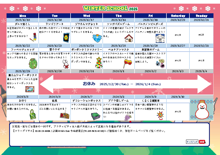 今年の冬は、Kids Duoの「ウィンタースクール」で英語にふれて、楽しくステップアップ!