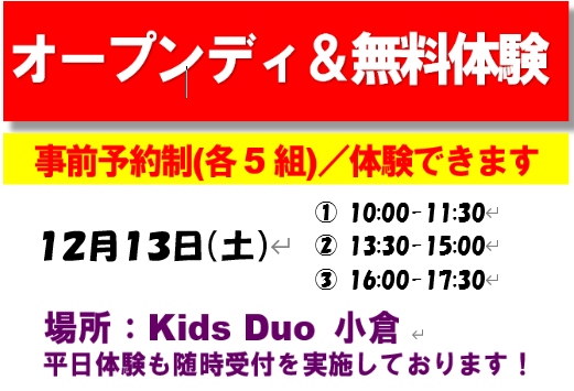 ぜひ、お気軽にKids Duo 小倉のスクールに遊びにきてください!