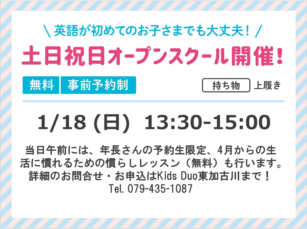 英語学童保育 Kids Duo 東加古川からのお知らせ