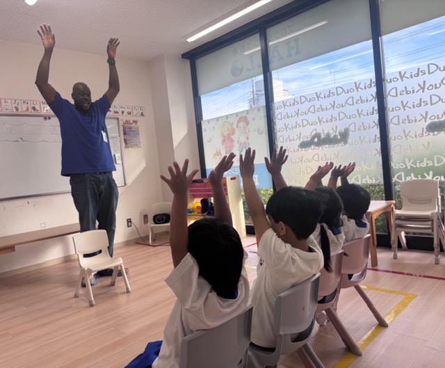 先生たちがいつも笑顔で笑わせてくれて、子供にもわかるように英語で伝えてくれます!