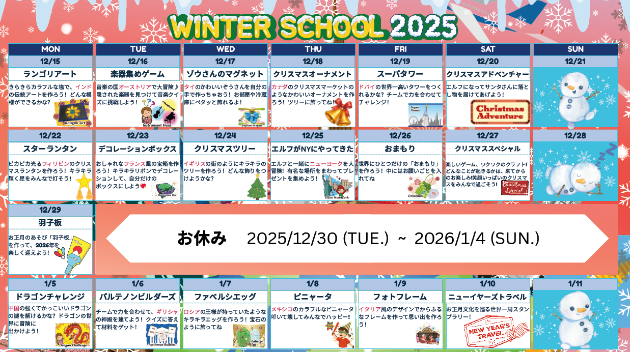 Winter Schoolを通して世界の文化を学び英語を習得しましょう!✨