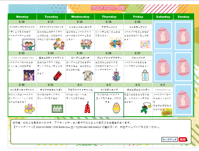 英語学童保育 Kids Duo 立川北からのお知らせ