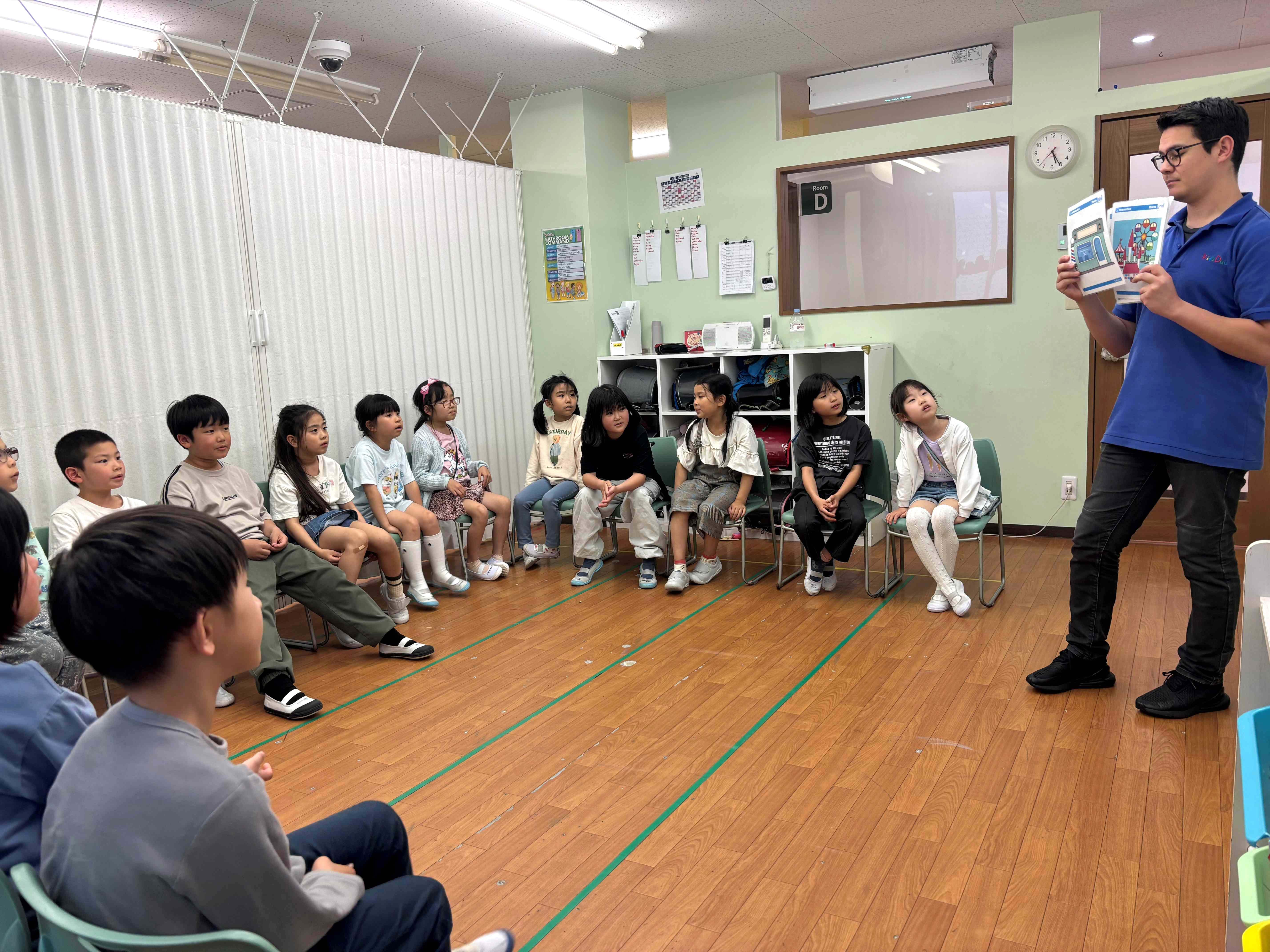 長年お通いのお子さまや兄弟姉妹そろってお通いのお子さまもいらっしゃり、大変賑やかな雰囲気の中、子どもたちは楽しく英語を学んで頂いております。