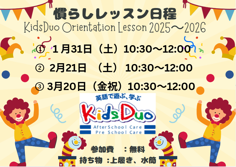 英語学童保育 Kids Duo 水戸南からのお知らせ