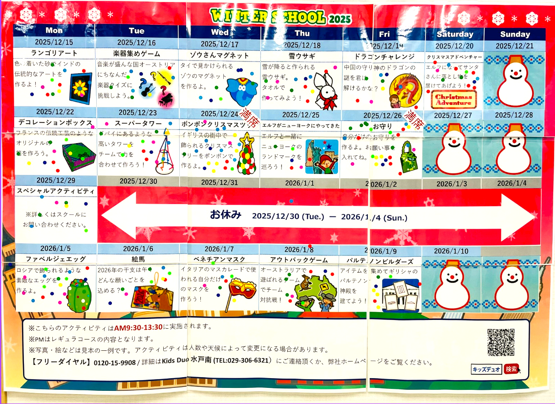 12/15(月)~23(火)は初めて参加される幼児さんにもおすすめです♪