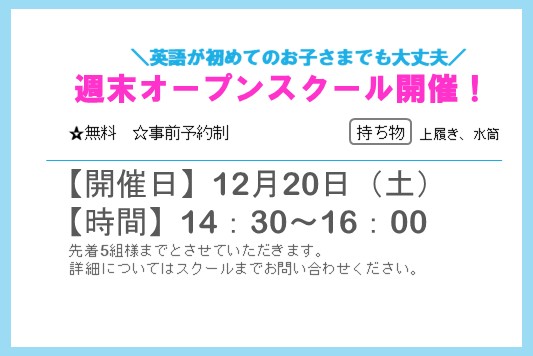 - 12月 週末オープンデーを開催します!