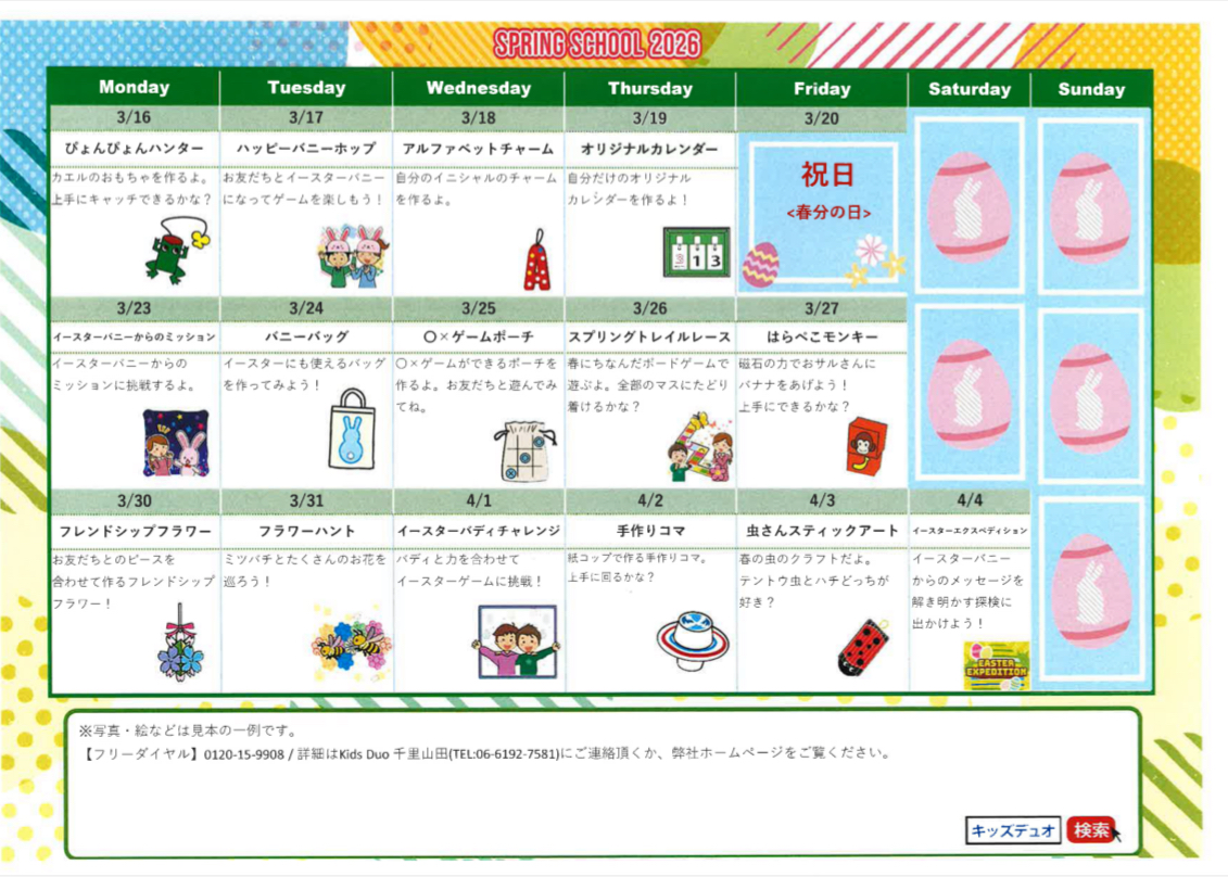 英語学童保育 Kids Duo 千里山田からのお知らせ